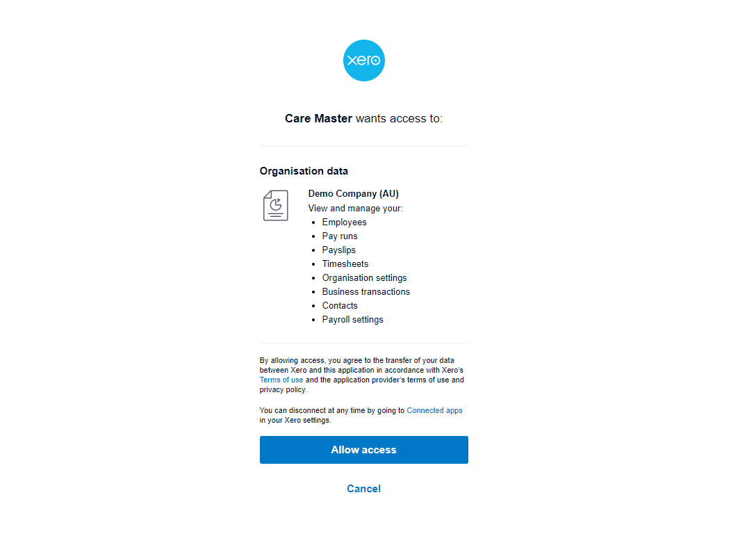 Done! Your CareMaster is now ready to communicate with Xero